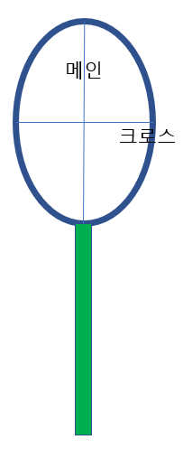라켓을 세웠을 때 방향으로 메인이 세로줄 크로스가 가로줄이 됩니다. 메인이 스핀을 주는데 사용되며, 크로스는 반반력 즉 공의 파워에 사용됩니다. 그래서 보통 메인의 텐션을 크로스 보다 높게 합니다. 예로 (55/53) (48/46)으로 합니다. 물론 같게 경우도 많으나, 크로스를 강하게 하는 경우는 흔치 않습니다.
