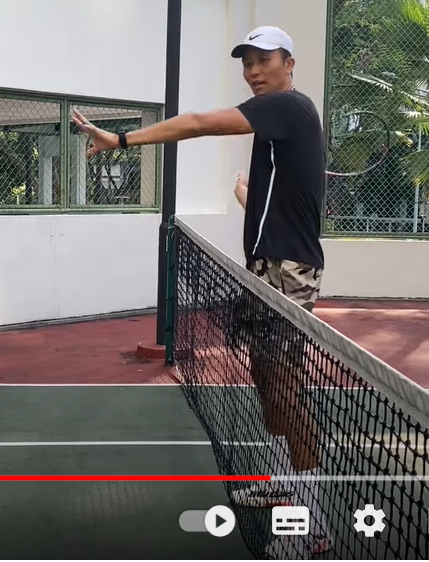 라켓을 세우고, 손목을 고정한 후에 중력을 이용해서 떨어트리면서 스윙 동작으로 이어지게 하면, 래깅 효과도 나오게 됩니다. 약간 각진 8자 형태로 떨이지면서 중력 효과와 래깅 효과를 볼 수 있습니다.