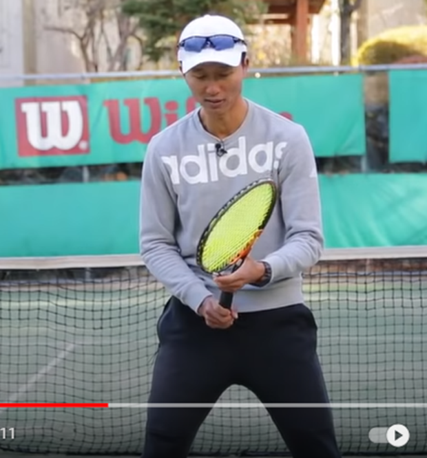 오른손은 이스턴 그립을 잡고, 왼손은 라켓을 목을 잡는 자세를 준비 자세라고 합니다. 엔디로딕처럼 두손을 모두 그립을 잡는 선수도 있지만, 일반 적으로 포핸드와 백핸드로 그립을 체인지 할 때 사진과 같이 준비하는 것이 가장 효과적입니다.