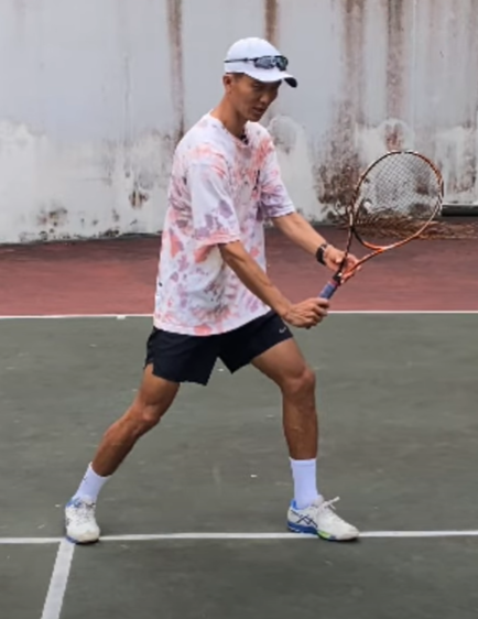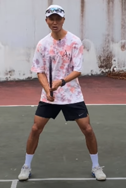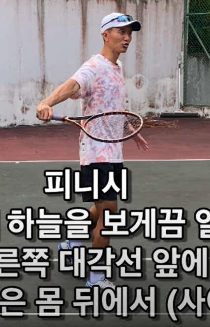발리과 같이 대각선으로 라켓을 세우는 동작으로 공의 위치를 찾는 동작과 동시에 진행 합니다.